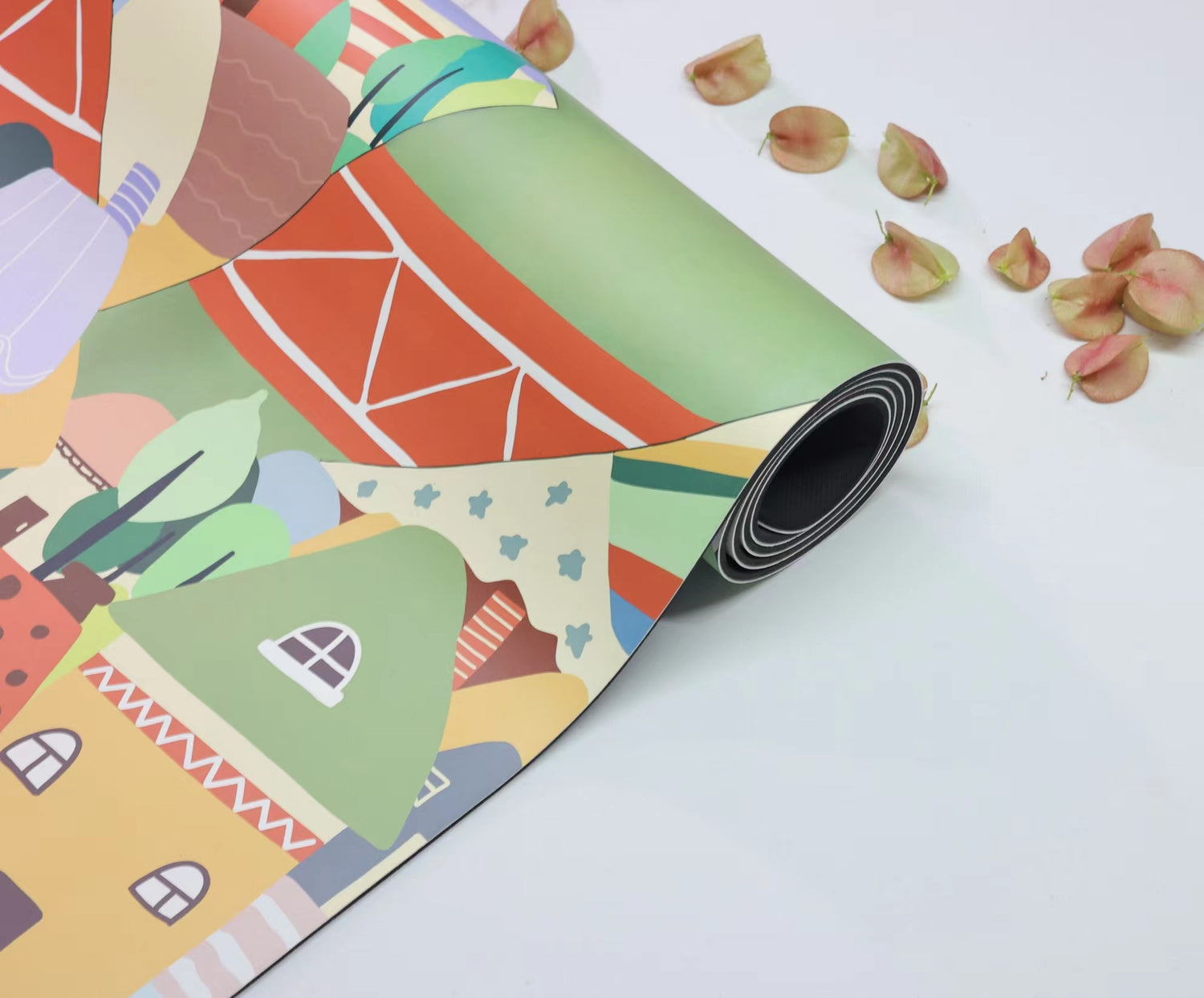 Your mat is designed to be rolled with the top (the colorful side with the alignment design) on the outside between uses. It is important to roll it in this way to ensure that your mat is beautiful and flat for every practice.